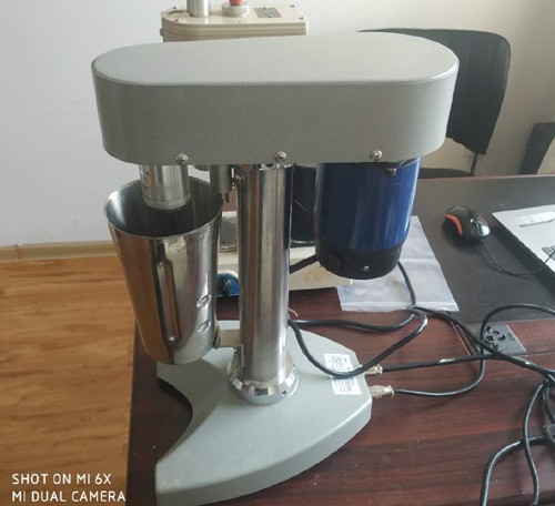 3.將攪拌桶固定在攪拌器上,調(diào)整攪拌器轉(zhuǎn)速到1000r/min,啟動攪拌器連續(xù)攪拌20分鐘。
